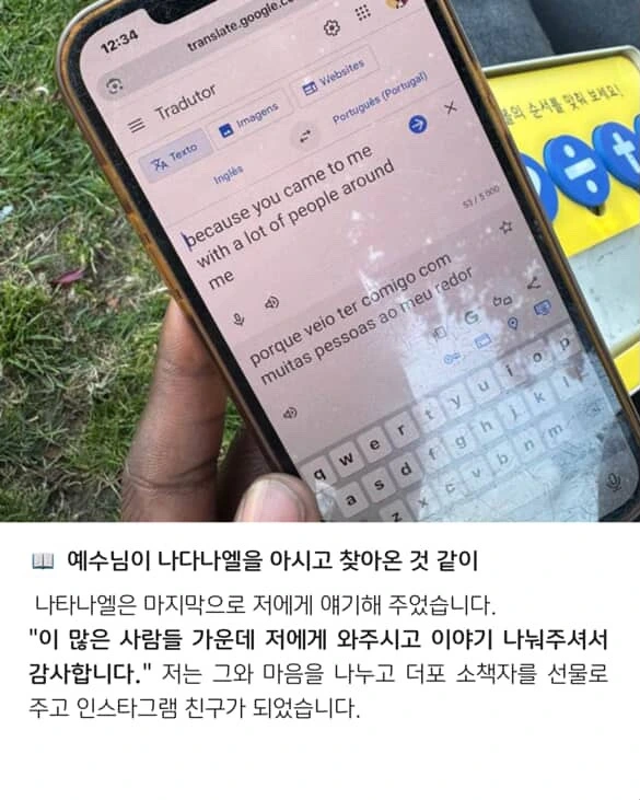 나타니엘은 수많은 사람 중에 자기에게 와줘서 고맙다고 했고 우리는 서로 인스타 친구를 맺었다.