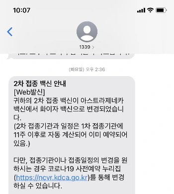 4월말에 접종을 하고, 2차접종에 대한 안내를 질병청에서 받았어요.