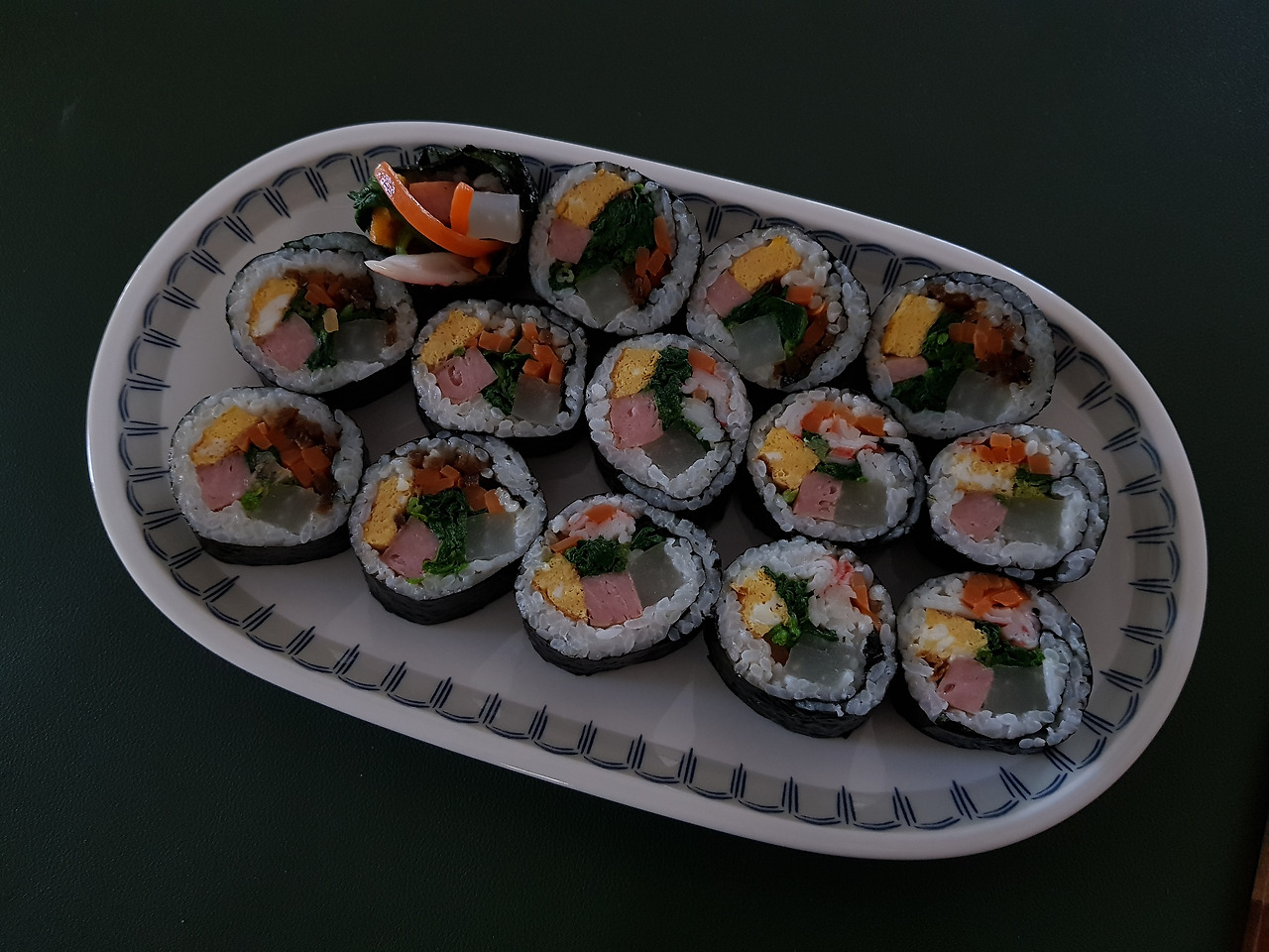 갓 싸 놓은 김밥은 밥의 따뜻한 기운이 그 안에 들어간 모든 재료들을 감싸며 하나로 아우르고 있어 별 거 넣은 것 없어도 맛있는 것 같아. 이렇게 따뜻한 김밥을 싸 먹으며 서로가 서로를 감싸고 어우러졌으면 좋겠어. 자주 해 먹다 보면 너희 식구들이 좋아하는 너희 집만의 김밥 레시피도 나올 거고 김밥 싸는 솜씨도 좋아질 거야. 집밥의 꽃이 피는 거지.