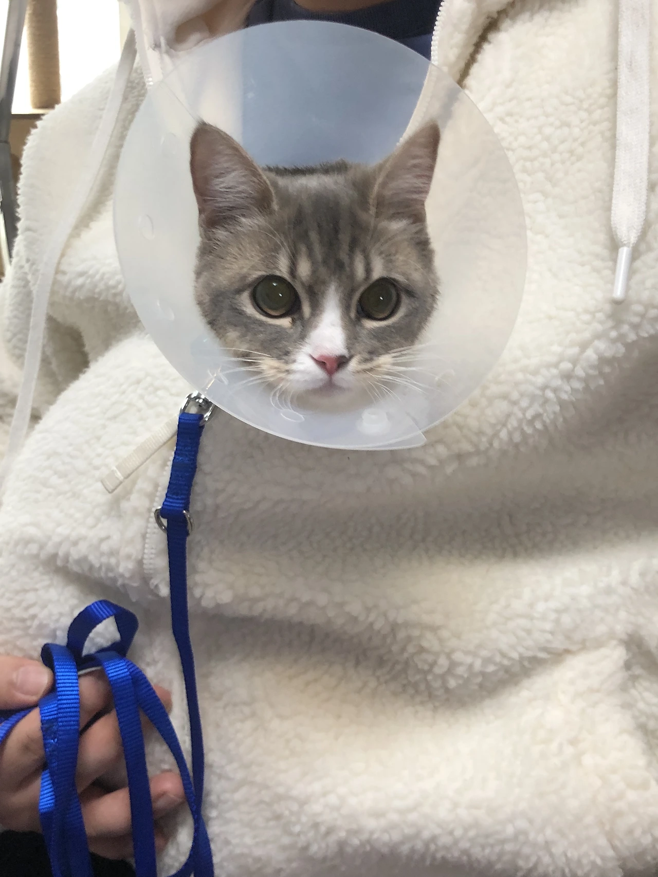 결국 제풀에 지쳤는지 넥칼라에 대한 관심을 포기하고 돌아다녔다. 애정 하는 장난감을 보고 물기 위해 애쓰다가 넥칼라 때문에 안 되자 발라당 누워서 발버둥 치고 간식을 주는 곳을 기웃거렸다. 마취가 덜 풀린 상태에서 주면 위험하다고 2~3시간 지난 후에 먹을 것을 주라고 안내받았다. 혹시 마취가 덜 풀려서 침을 질질 흘리는 경우가 있을 수 있다고 했다.
