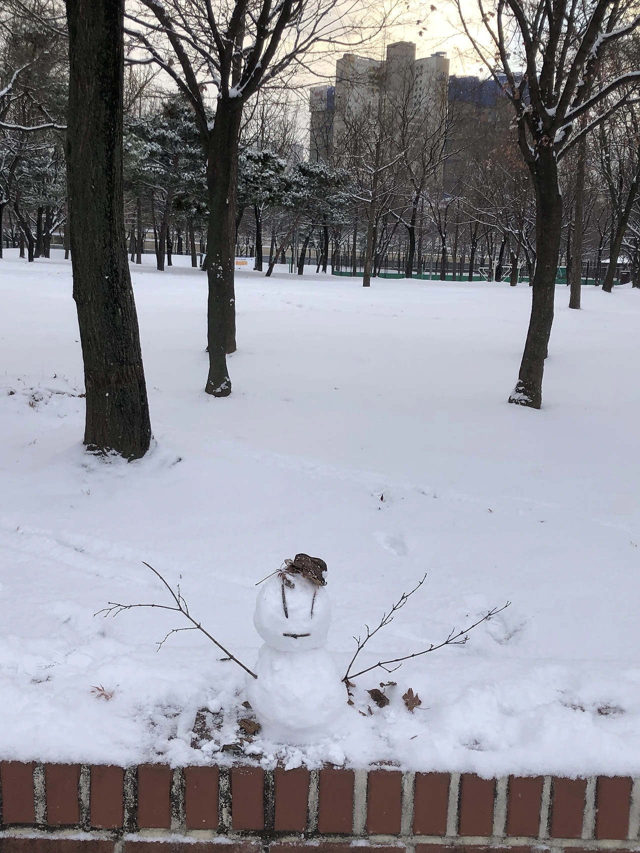 강아지를 데리고 산책 나온 사람들도 있었는데 강아지가 신이 나서 돌아다니는 모습이 귀여웠다. 부모 손 잡고 나온 아이들도 신이 났는지 눈사람을 만드기도 하고 썰매를 가지고 나와서 아이를 태우고 끌어주는 아버지도 있었다. 눈이 오니 세상이 밝아졌고 마음도 밝아진다. 아내 말대로 크리스마스에도 눈이 왔으면 좋겠다.