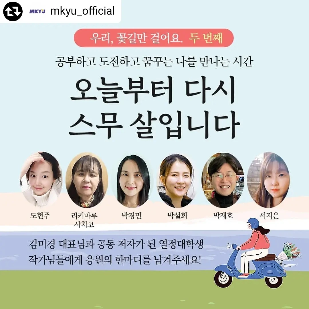 글로 접하고 나서야 자신의 아이를 잃은 슬픔을 승화시켜 다른 아픈 아이 100명을 살리겠다는 목표로 열정적으로 살아가고자 한다는 것을 알게 되었습니다. 혼자만 변화한 것이 아니라 남편까지 MKYU를 전도한 이선영 작가님의 글은 다른 필진들에게도 전해졌는지 출간 기념회에서도 필진 중 3분이 연설을 하기로 했는데 그중 가장 많은 필진의 지지를 받았습니다. 벌써 출간 기념회가 기대됩니다.
