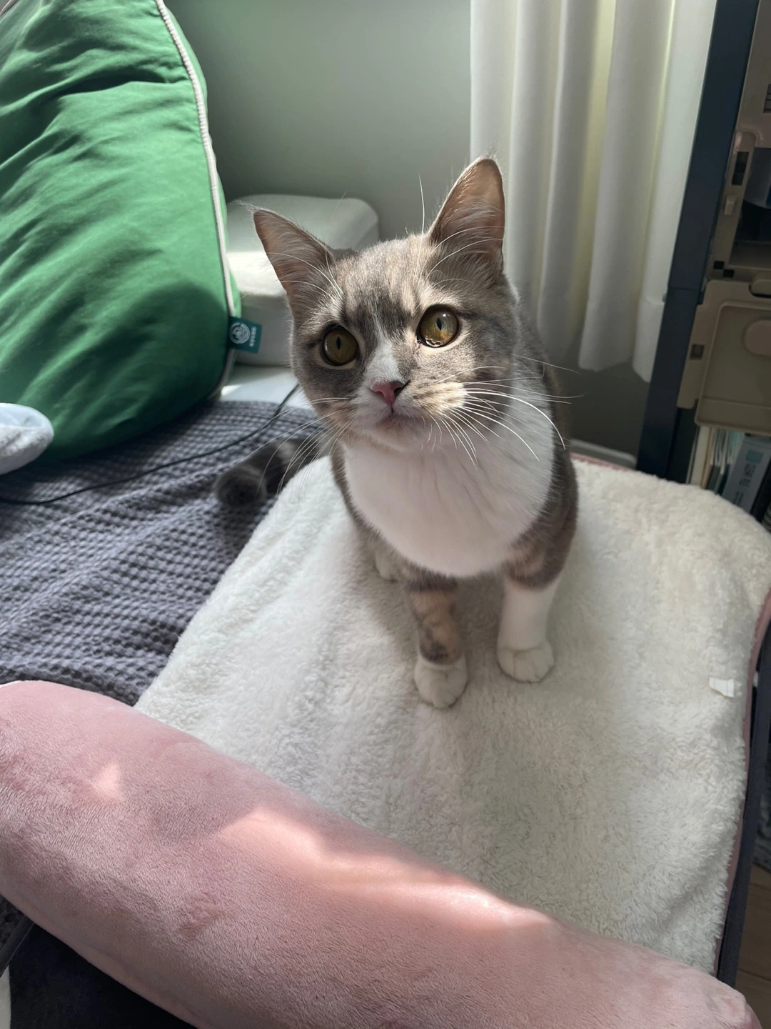 첫 득템은 시엘이의 전용 자리 깔개입니다. 방문에서 창가의 캣타워로 가는 공간에 침대가 자리하고 있었습니다. 자리 배치를 할 때만 해도 별 생각 안 했는데 시엘이가 캣타워에 오를 때마다 집사를 계단 삼아 밟고 올라갑니다. 평소에는 괜찮은데 잠잘 때는 곤욕이었습니다. 어느 날, 아내랑 자는 위치를 바꿔서 잤는데 시엘이가 밟고 다니는 통에 자다가 깨다가 반복하니 잠을 설쳤습니다.