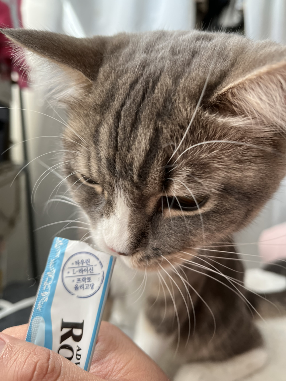 그래도 어렸을 때부터 질리지 않고 꾸준히 먹는 것이 있습니다. 츄르는 먹은 직후에도 다시 달라고 애교를 부립니다. 아내가 츄르 주는 것을 저에게 양보해서 초반에 츄르를 제가 주었습니다. 그래서인지 시엘이는 유독 저를 더 따릅니다.