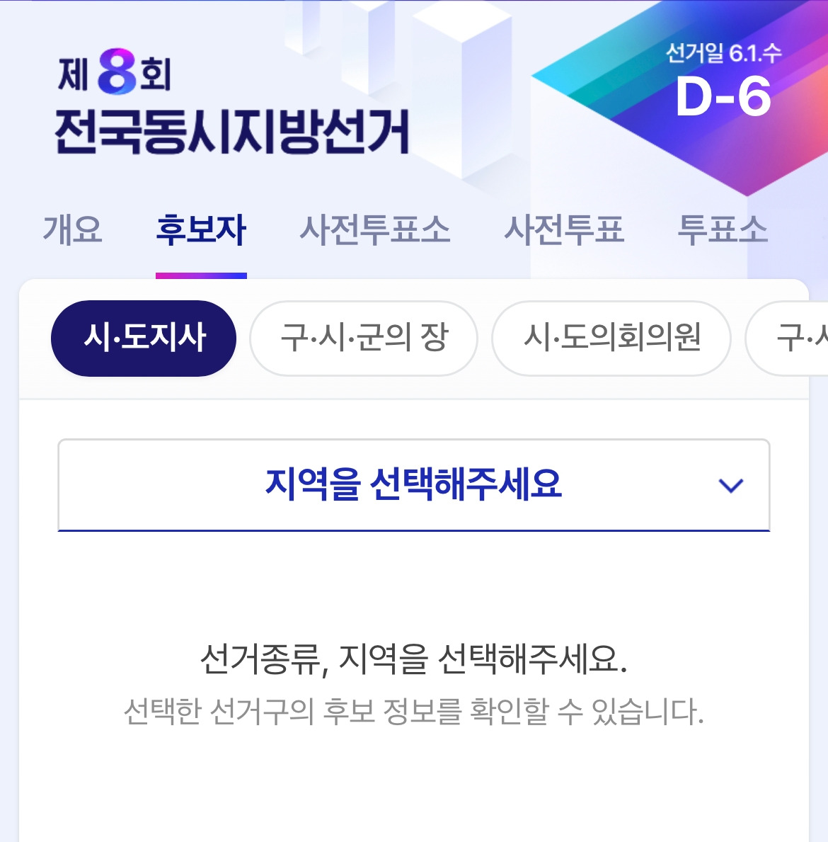 6/1 지방선거를 앞두고 있습니다. 선거 유세가 벌어지고 있는 모습을 종종 봅니다. 대선에는 대선 후보들의 공약도 우편물로 받아보고 방송매체를 통해 후보들의 공약도 볼 수 있었습니다. 지방 선거는 비중이 낮다고 생각하는 건지 당을 보고 뽑으라는 건지 후보가 누구인지도 잘 모르겠습니다.