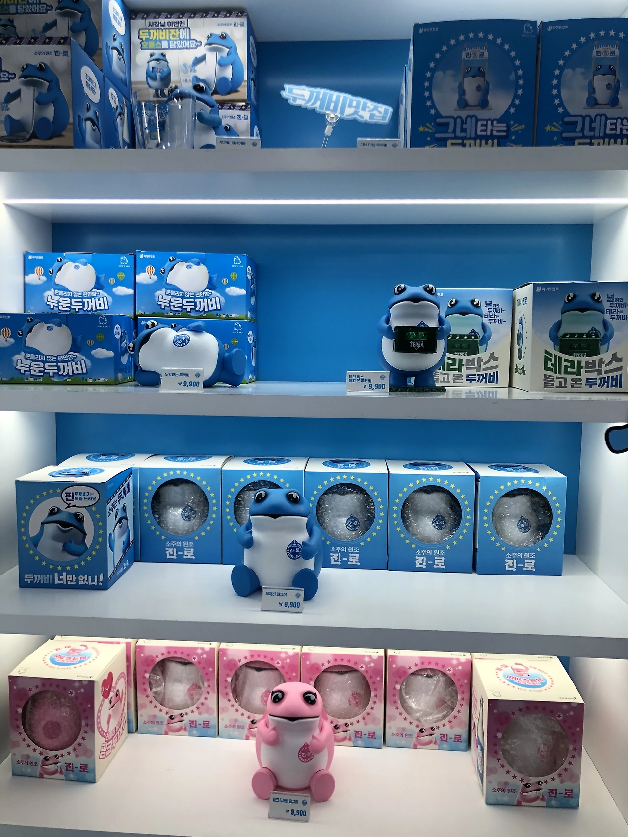 지역에 따라 소주가 조금씩 다르지만 서울 태생인 아내도 참이슬이 익숙했습니다. 요즘 브랜드와 콜라보 마케팅이 유행하며 참이슬 관련 두꺼비 캐릭터나 굿즈들도 유행인 모양이었습니다. 예전에 원조 두꺼비는 구하지 못하고 분홍색 두꺼비를 구해서 책상 위에 올려놓았습니다.