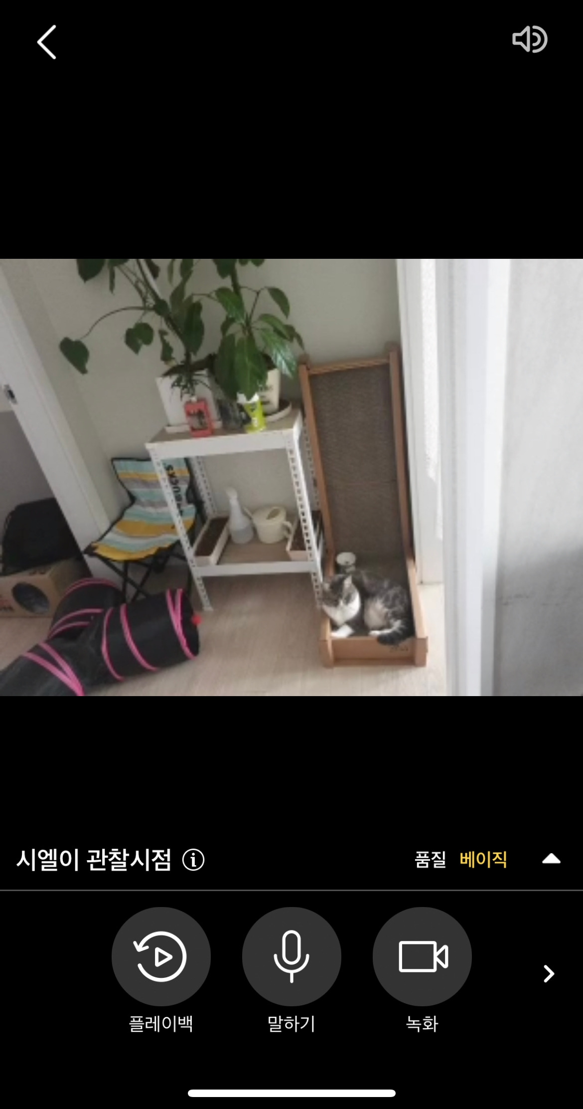 모션 감지 기능과 말하기 기능도 있어 펫캠에서 생각했던 기능이 다 있었습니다. 공폰만 있으면 누구나 나의 반려동물이 혼자 있을 때 잘 지내고 있는지 볼 수 있습니다. 한 가지 아쉬운 점은 카메라 한 대와 뷰어 한 대가 연결되는 거라 한 곳에 설치해놓고 그곳에 있지 않으면 볼 수 없다는 것입니다.