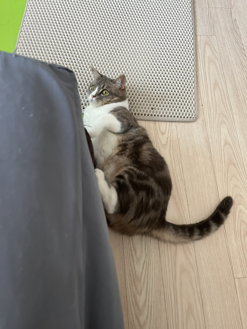 활동량은 줄고 있지만 식탐은 그대로라 살이 점점 붙어 뚱냥이가 되어가는 중입니다. 어렸을 때는 소량씩 자주 먹고 배가 차면 바로 자리를 떠났습니다. 그런데 요즘에는 먹고 난지 10분도 채 지나지 않았는데 더 달라고 보채기 시작합니다.