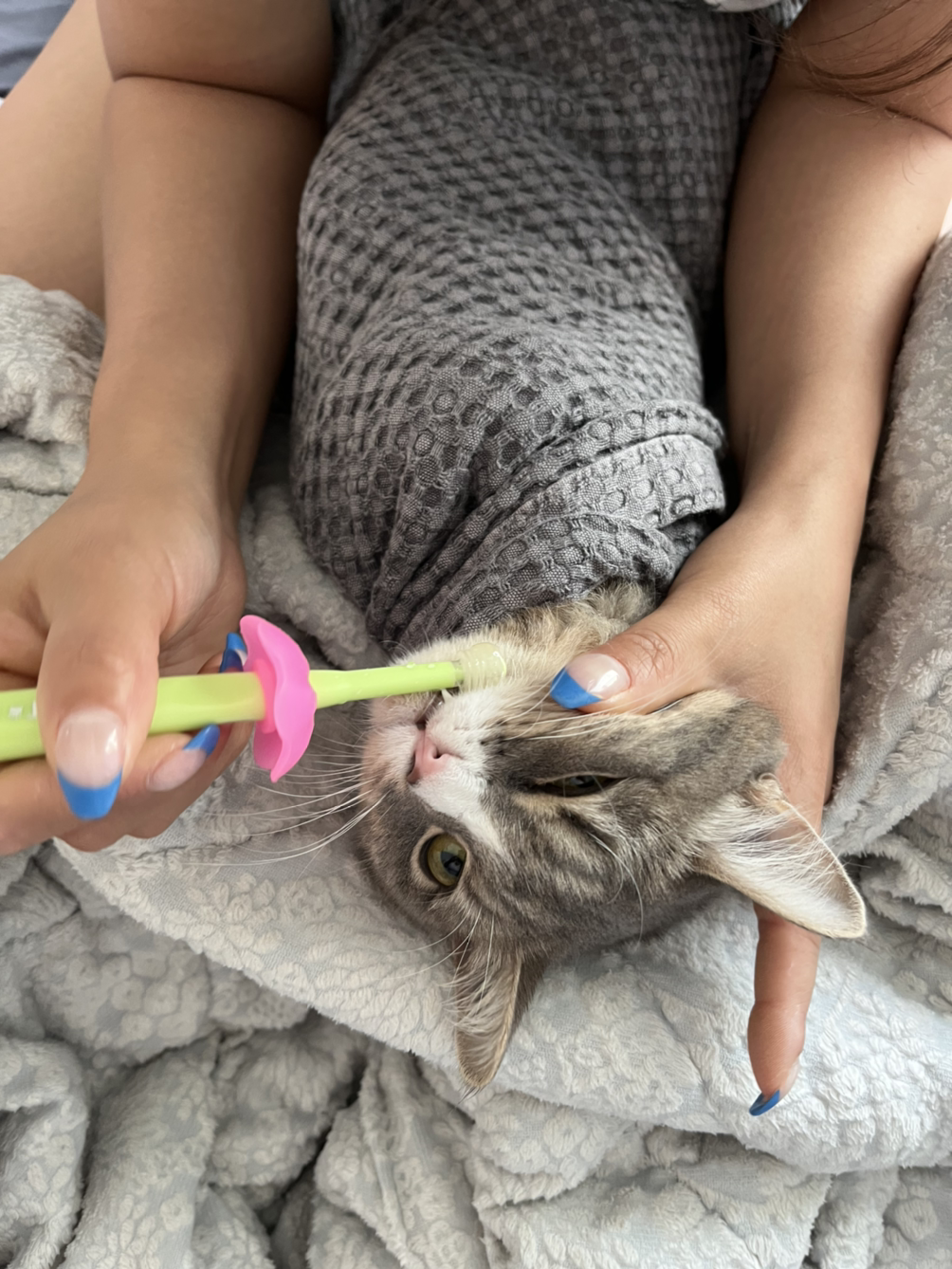 처음에는 애교를 부리면 주었는데 왜 안 주지하던 시엘이도 점차 언제 주는지 파악을 하고 그 시간에 맞춰서 옵니다. 츄르는 일어나서 하나(새벽 6시 반), 퇴근해서 하나(저녁 7시 반), 자기 전 하나(23시) 이렇게 세 개 정도 주고 시엘이가 하기 싫어하는 목욕, 발톱 정리, 귓 청소 등을 했을 때 하나를 주고 있습니다.