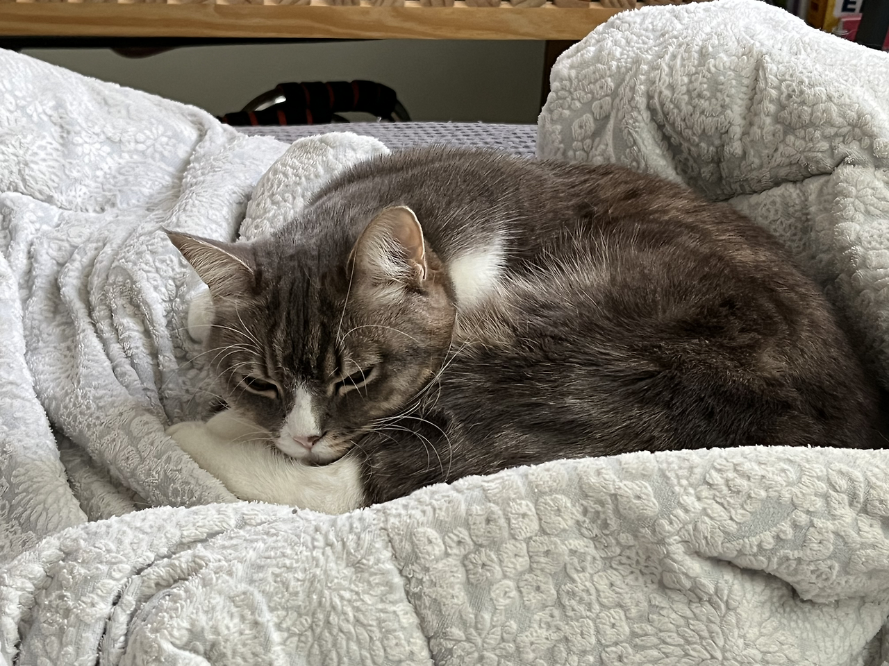 집에서 빵을 굽는 시엘이가 부러워지는 겨울이 왔습니다. 11월이 그리 쌀쌀하진 않아서 비교적 따뜻한 겨울을 보내려나 했는데 비가 온 후, 갑자기 날씨가 추워졌습니다. 날씨가 추워지며, 겨울 이불을 꺼냈더니 시엘이도 애용합니다. 감촉이 좋은지 이불 위에 자리를 잡고 잠이 들곤 합니다.