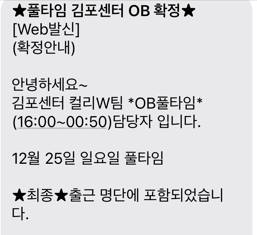 내심 크리스마스에는 아내와 함께 오붓한 시간을 보내고 싶었습니다. 그래도 마켓컬리에 근무 신청을 했습니다. 공휴일 적용한다는 공지가 왔으니 1.5배 적용될 테고 지원자가 많아서 마감될 것이라는 생각이 들었기 때문입니다.