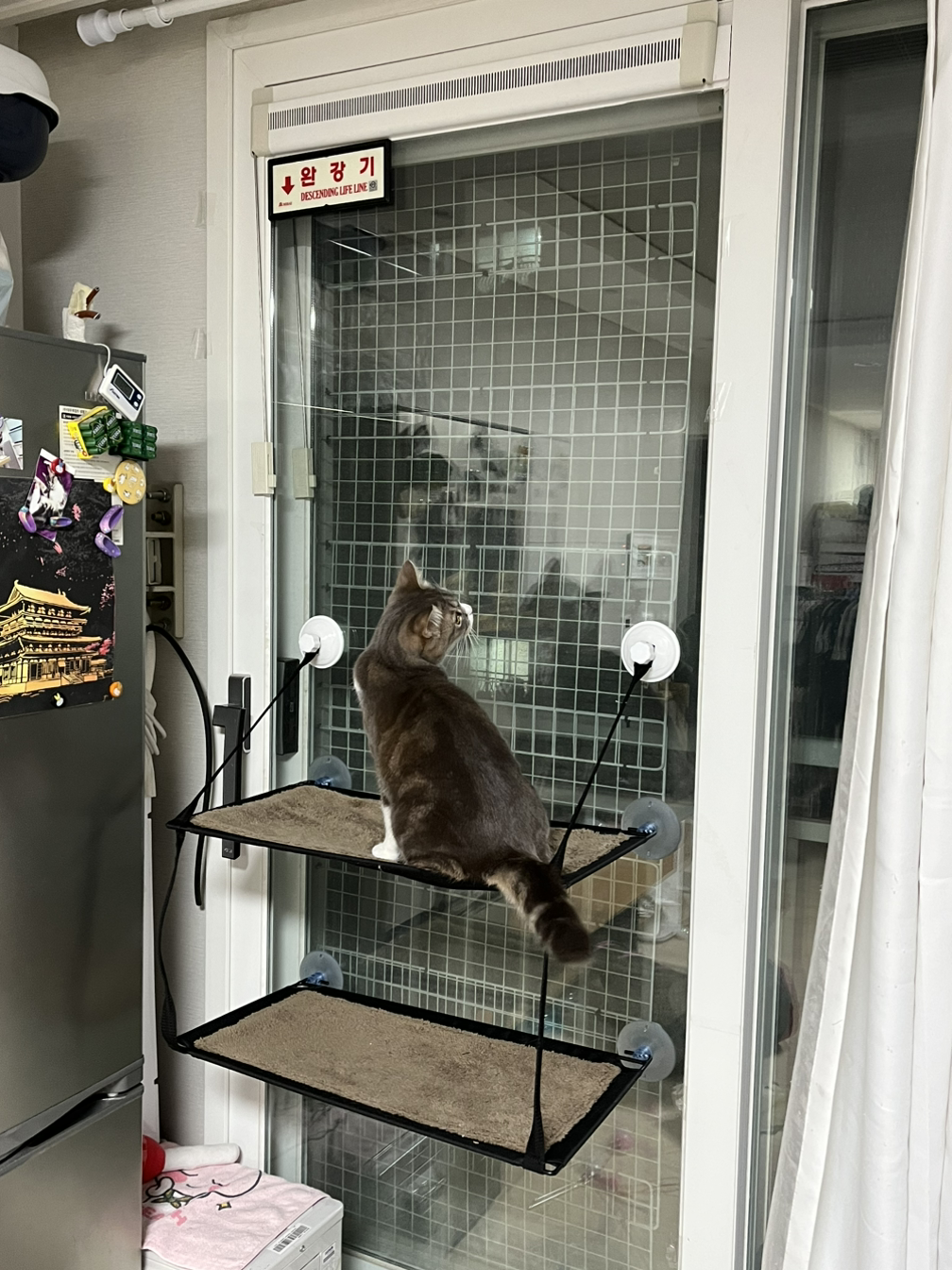 여름에는 모기를 사냥해서 놀라게 하더니 움직이는 것 중에서는 날아다는 것에 유독 관심이 많은 것 같습니다. 나방의 수명이 다할 때까지 창문에서 벗어나지 않을 기세입니다.