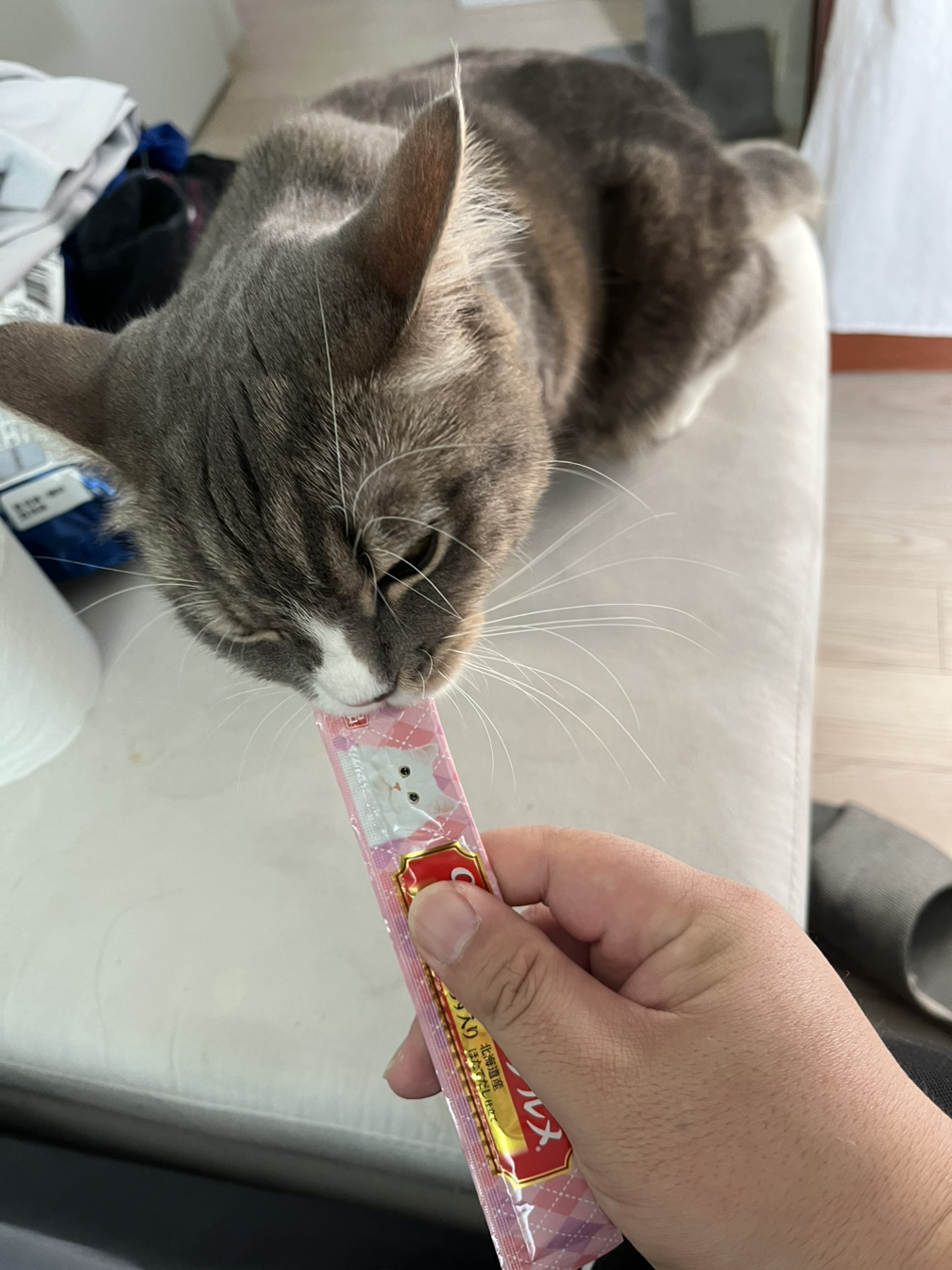 츄르를 주기 전에 항상 이름을 불렀기에 이름만 부르면 츄르 주는 줄 알고 어디에서든 달려옵니다. 역시 츄르가 이겼습니다. 초롱초롱한 눈빛으로 저를 바라봅니다.