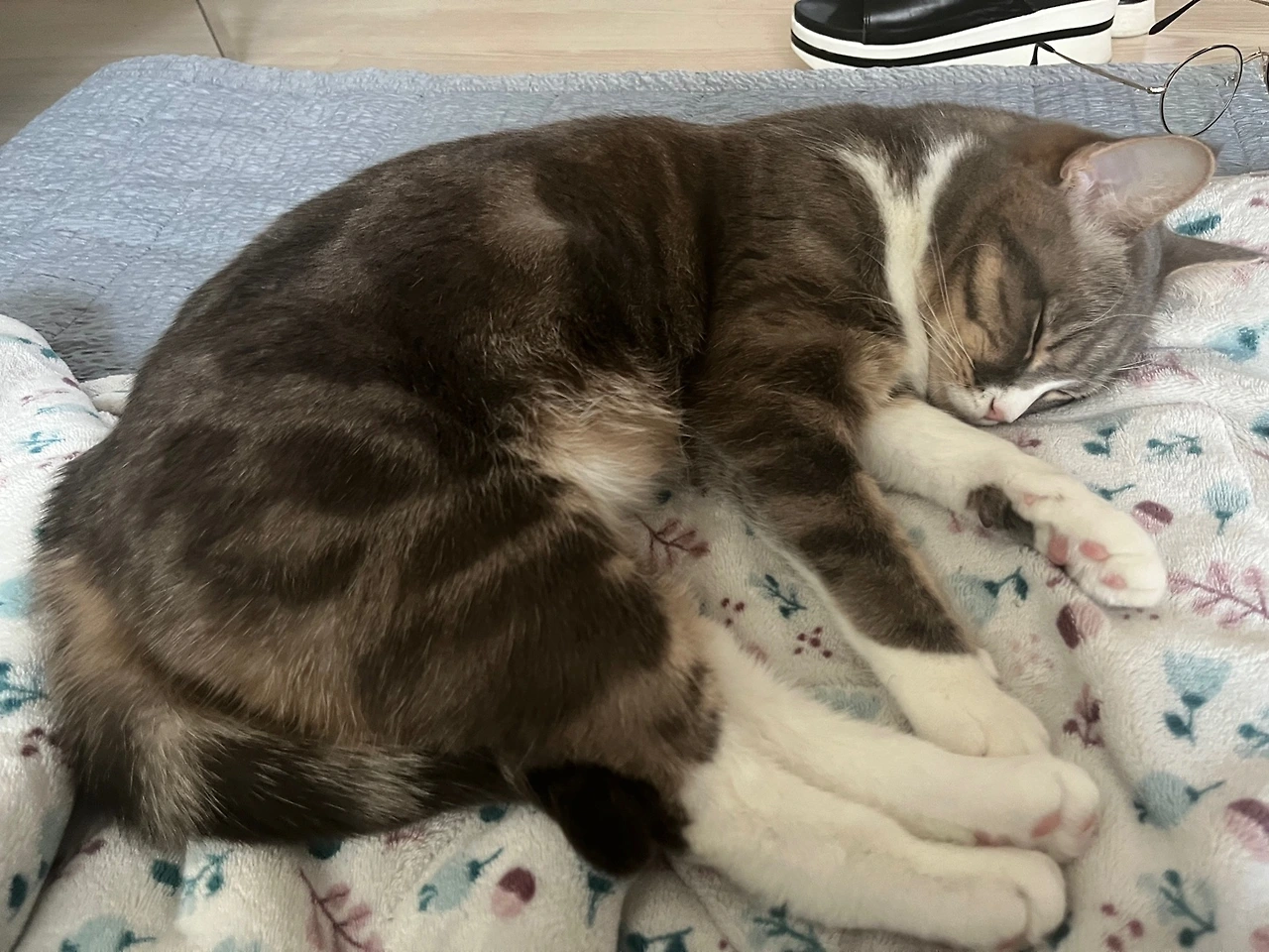 시엘이는 나방을 쫓아다니느라 체력이 방전이 되었는지 우다다도- 고양이가 갑자기 무언가를 쫓거나 쫓기듯 집안 곳곳을 뛰어다니는 것-하지 않고 잠이 들었습니다. 작은 것에도 행복해하는 시엘이를 보며 저도 행복합니다.