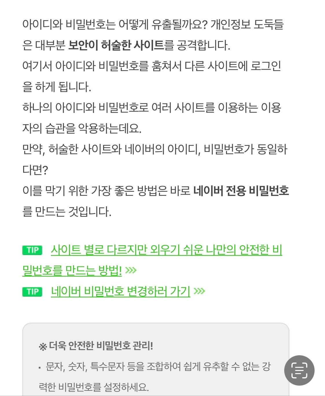 다른 사람들의 계정 도용당한 사례들을 찾아보았는데 비밀번호를 자주 변경하라는 것과 강력한 암호를 설정하라는 것 외에는 없었습니다. 블로그나 카페에 무슨 짓을 하든 사용하지 않는 것이고 제가 한 일이 아니라는 걸 입증하면 되니 비밀번호를 변경했으니 지나칠 수 있습니다.