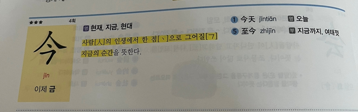 오늘 본 한자 중에 ”사람의 인생에서 한 점으로 그어질 지금의 순간“이 현재라는 뜻풀이가 왠지 철학적이고 와닿습니다. 많은 사람들의 지혜가 담긴 글자라 그런지 배우면서 그들의 생각을 알 수 있는 것 같아 좋습니다.