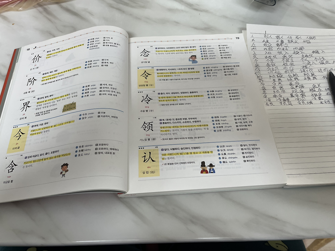 단어 외울 때, 어떤 방식으로 외우시나요? 저마다의 방법이 있을 텐데 저는 쓰면서 외우는 걸 좋아합니다. 여러 번 읽거나, 밑줄을 그으면서 외우는 것이 속도가 빠른데도 한자, 한자 써야지 제 것이 되는 것 같습니다. 오래 쓰다 보면 가운데 손가락 안 쪽이 아파오고 굳은살이 생기는데 그마저도 노력의 흔적이 됩니다.