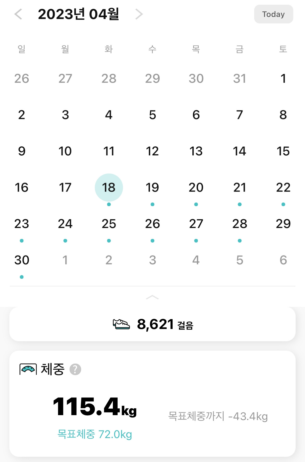 연례행사인 다이어트를 다시 시작했습니다. 몸무게가 많이 나가는 만큼 체중 감량 속도가 빠른 편이었습니다. 그런데 활동량이 적어져서인지 예전처럼 눈에 보이게 체중이 감소하진 않게 되었습니다.
