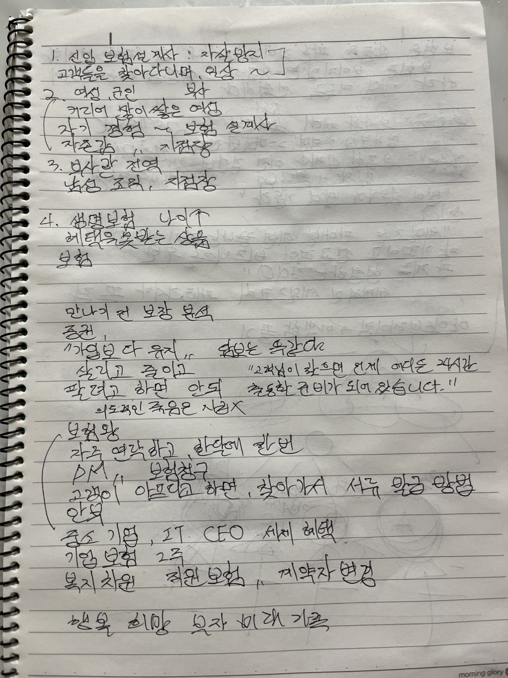 보험은 예전에 고객센터를 통해 경험한 것이 대부분의 경험입니다. 물론 컨설턴트를 통해 계약을 하거나, 녹취 계약을 해보긴 했습니다. 그마저도 단편적인 기억이었습니다. 아는 것이 많지 않다 보니, 인터넷에서 자료를 찾아 옮겨 적어 보기도 했습니다.