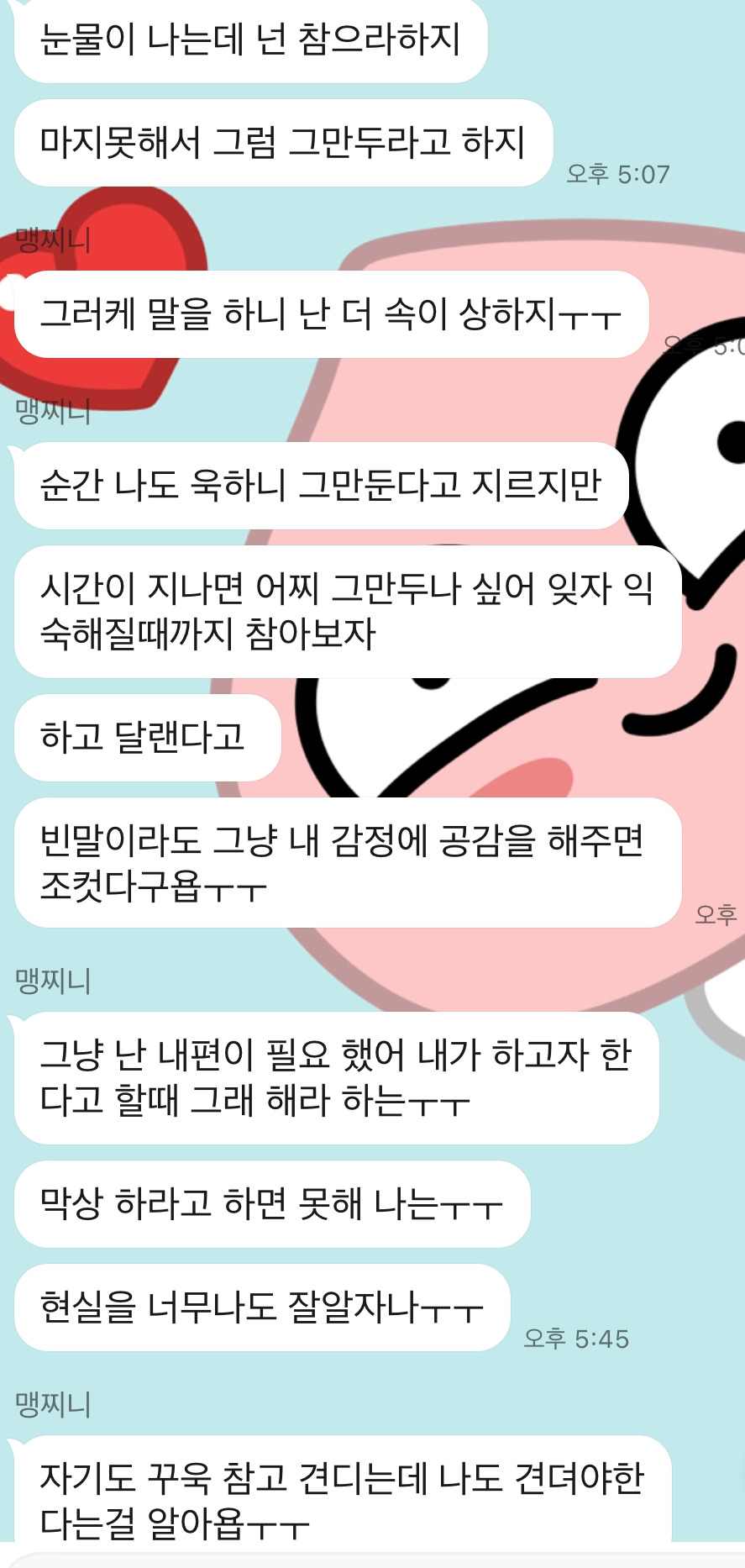 남편의 A: 그럼 더 이상 스트레스받지 말고 퇴사해요.