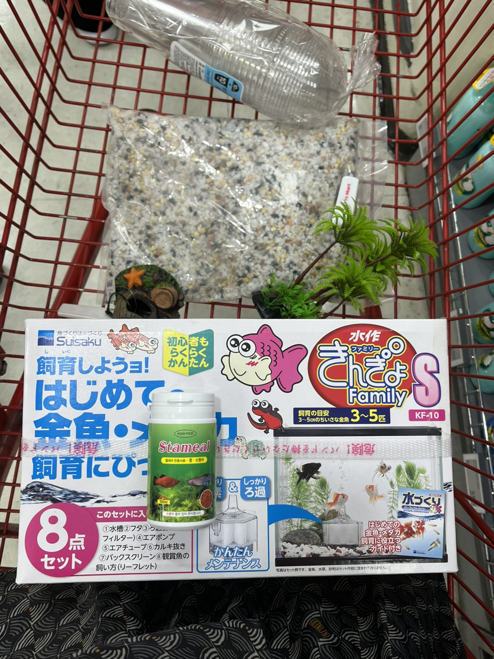 다시 마트의 수족관 코너로 갔습니다. 아내가 전에 봐둔 어항으로 샀습니다. 마침 직원 분도 있어서 먹이와 모래, 간단한 장식물도 추천해 주셨습니다. 전 금붕어라고 생각했는데, 생긴 걸 듣더니 삼각 플래티라고 알려주셨습니다. 보여주신 물고기를 보니, 삼각 플래티였습니다.