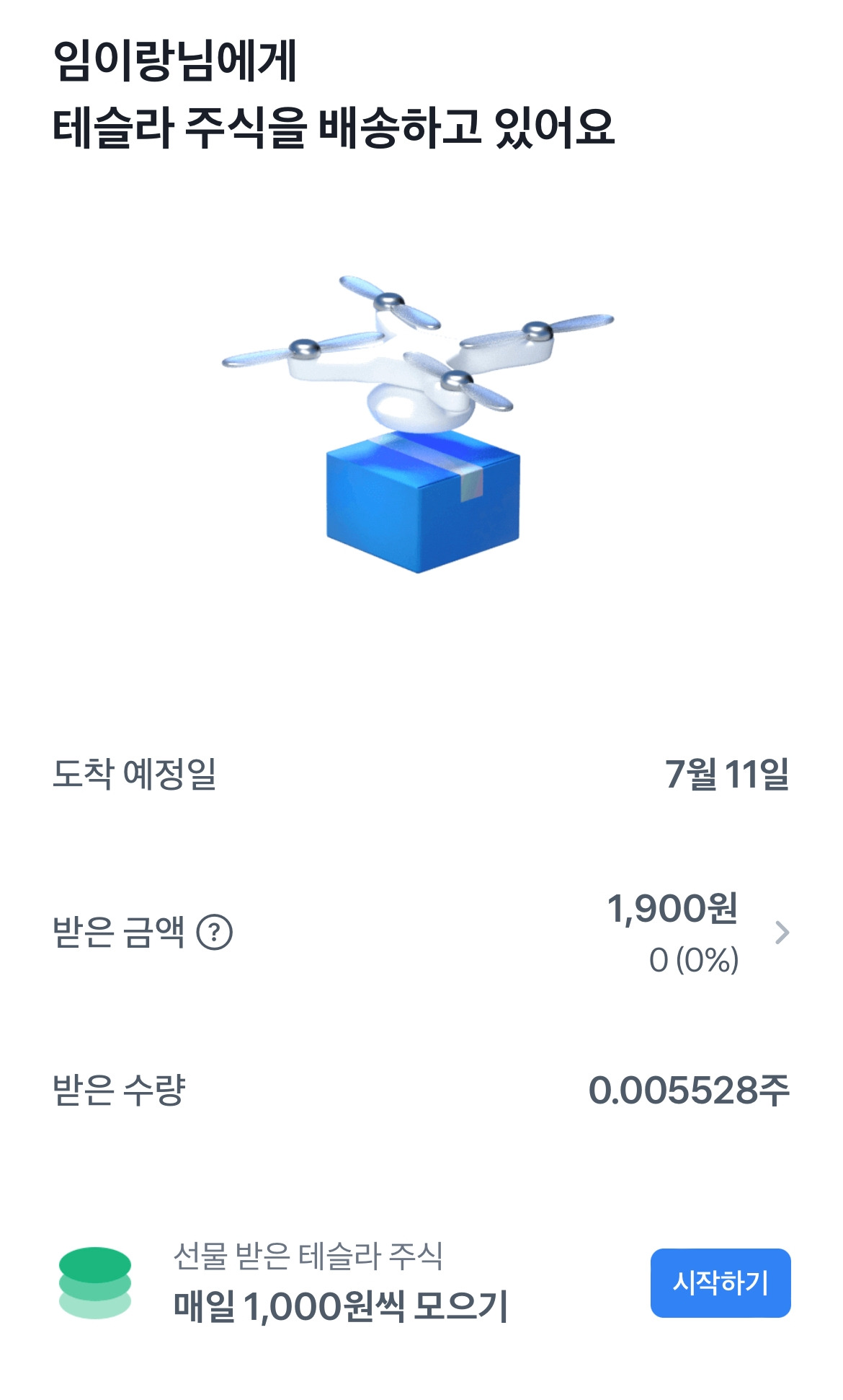 기능이 많아서 둘러보다가, 주식 관련 부분이 저를 사로잡았습니다. 증권 계좌를 만들면 미국 주식을 준다고 되어 있어 계좌도 개설했습니다. 개설 선물로 5만 원의 주식을 사면, 추가로 6,250원만큼의 주식을 선물로 준다는 팝업이 떴습니다.