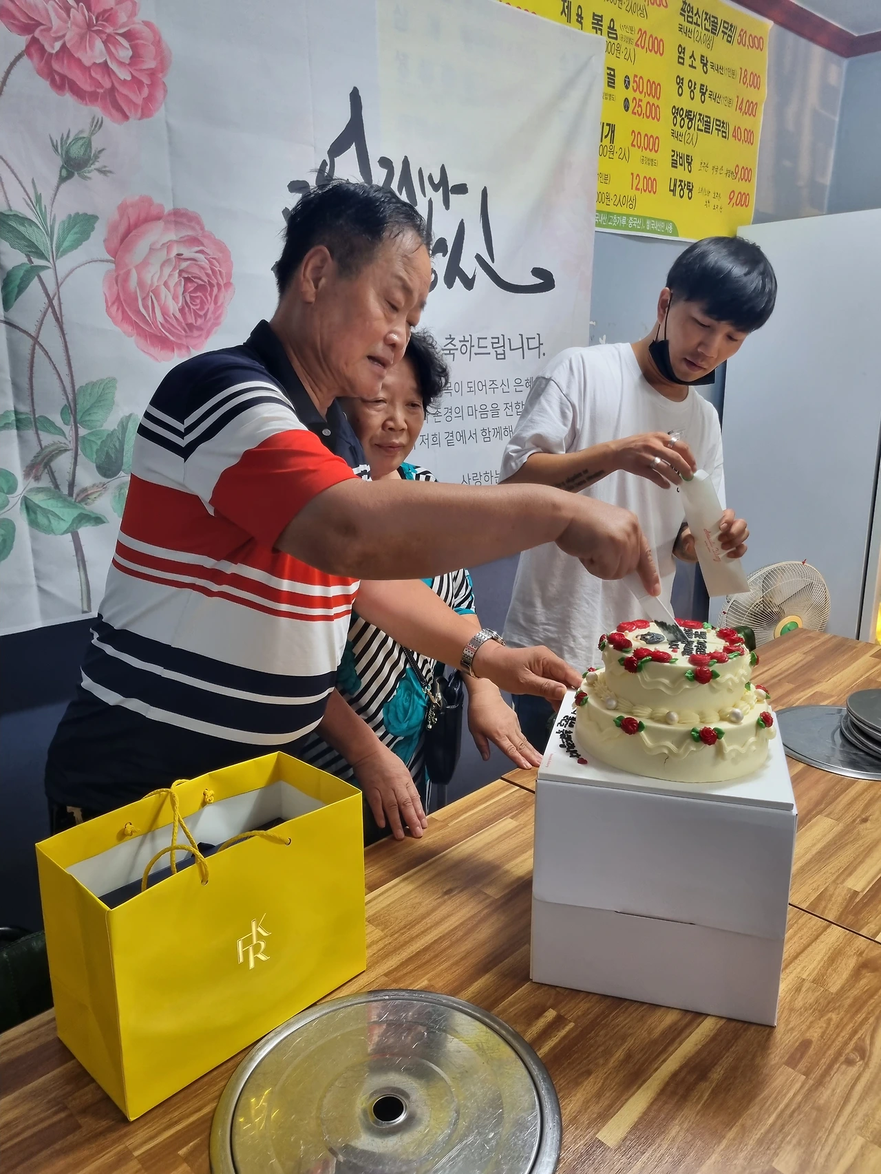 여건 상, 제주 여행은 계획만 세우고 무산되었습니다. 아버지 칠순은 가족들 및 지인들과 조촐하게 식사를 하기로 했습니다. 교회에는 아버지께서 떡을 돌리셨습니다. 여동생이 준비한 현수막과 맞춤케잌도 잘 나왔습니다.