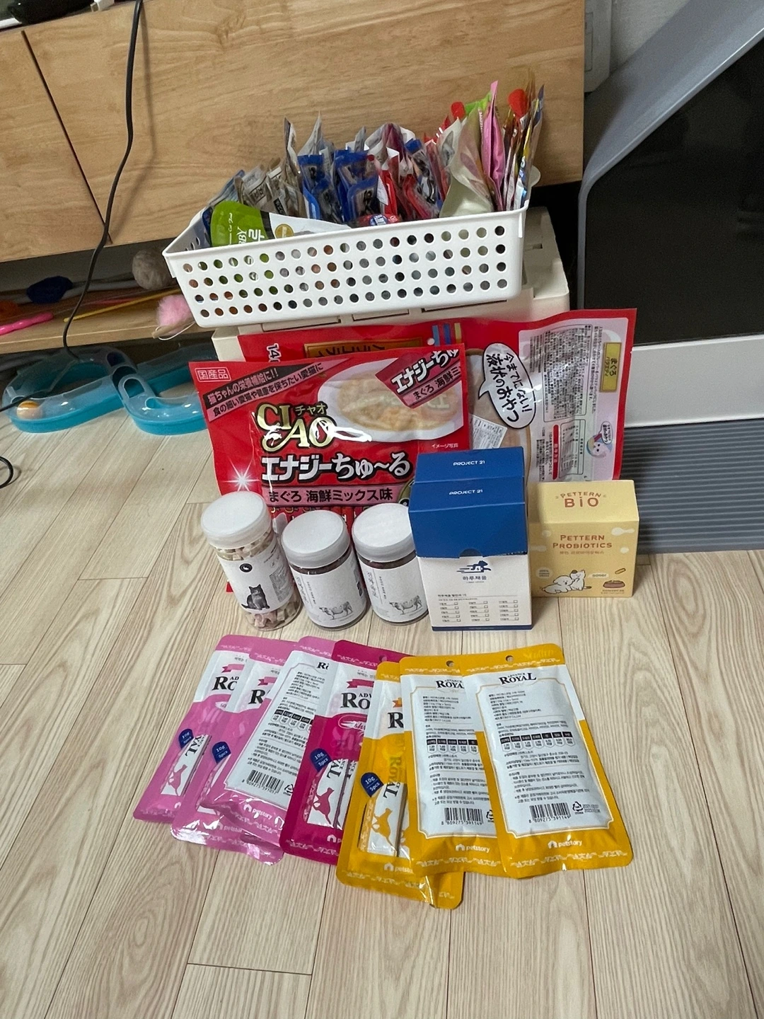 츄르를 주기 위해 이미 뜯었는데 그냥 가버리면 어떡하란 말이냐? 처음에는 황망해진 두 손을 어찌할 바 몰랐는데, 이제는 비닐랩으로 포장한 다음 냉장고에 두었다가 유산균 줄 때 섞어서 주고 있습니다.