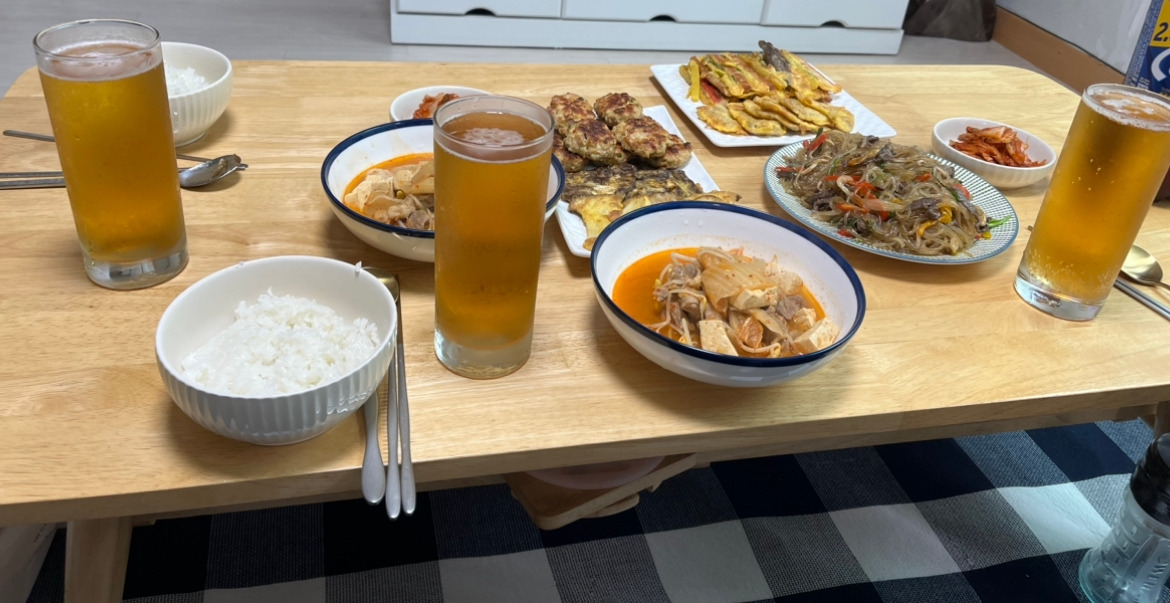 아내가 빈 손으로 오기 그렇다며, 하이볼 타기 좋은 양주를 샀는데, 누나가 삼촌이 사 왔다며 아들에게 주었습니다. 누나와 아내, 그리고 저는 맥주 피처를 두 병이나 비웠습니다. 이미 배가 부른데도 누나는 하나라도 더 챙겨 주려고 했습니다. 맥주잔이 400ml나 들어가는 큰 잔이라 3잔씩 마셨으니, 1.2리터는 마셨습니다.