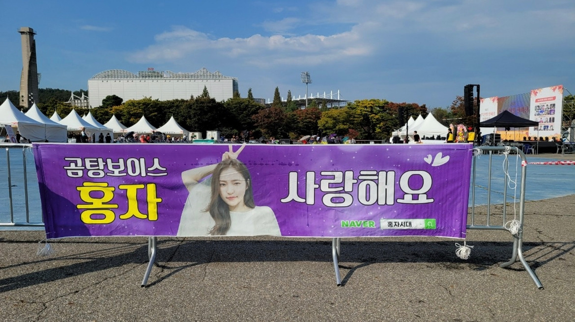 홍자 팬카페 “홍자시대”도 가운데 쪽으로 자리 잡았는데, 시간이 가까워짐에 따라 하나 둘 모이기 시작했습니다. 사회자가 가장 먼 곳에서 온 사람이 누군지 물으며, 선물을 챙겨줘서 알게 되었는데 홍자를 보기 위해 광주와 창원에서 오신 분들도 있었습니다.