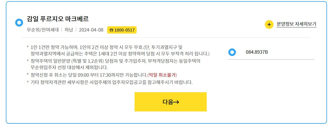 현재 집은 부평이고, 직장은 대림인지라 감일은 현재 가주지 기준으로는 반대편인입니다. 게다가 이번에 전세 재계약을 한터라 청약 통장도 깨서 생활비에 보태서 청약 순위도 없었습니다.