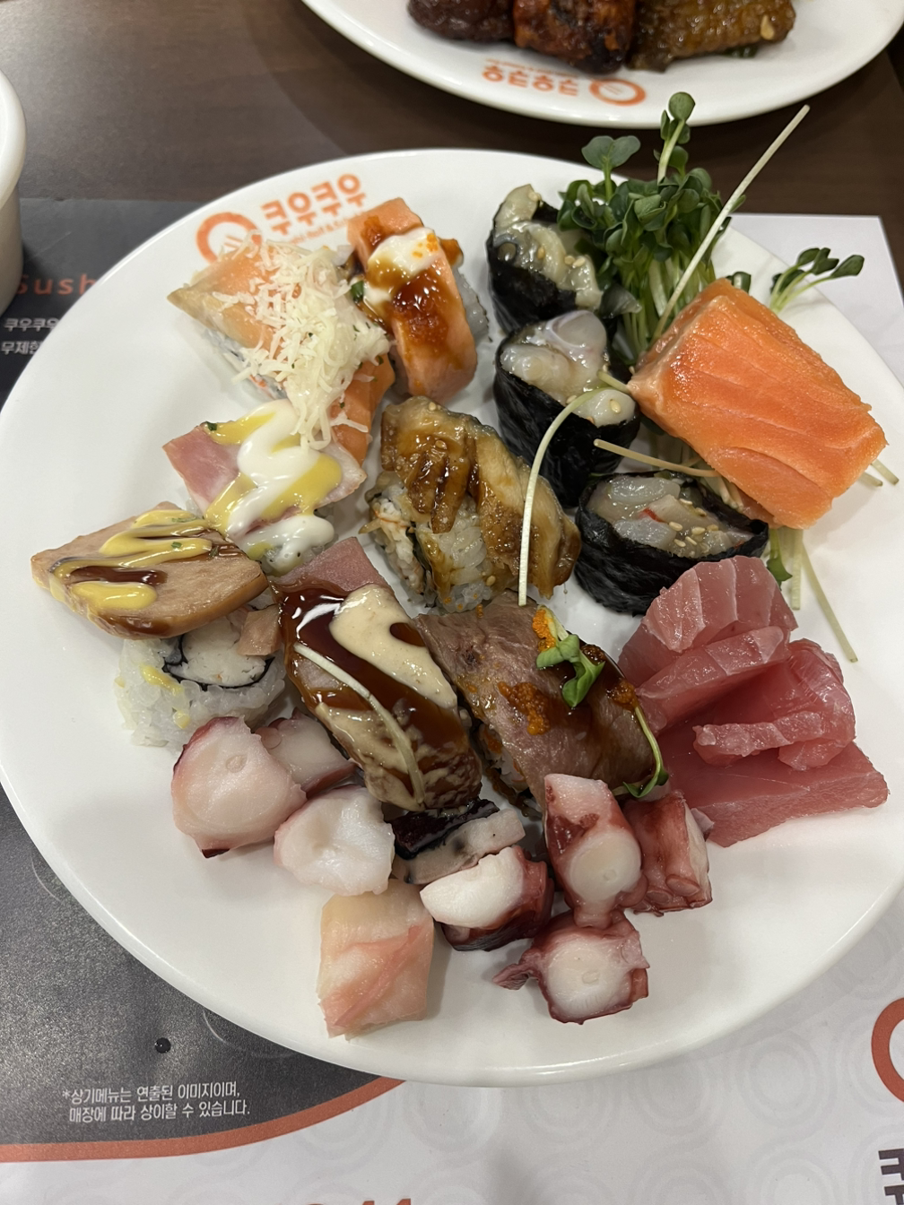 변명을 하자면, 회식이 두 번이나 있었습니다. 기존 팀장이 그만두고, 새로운 팀장을 맞이하는 관리자 회식을 했습니다. 그래도 샤브샤브라 야채 위주로 먹었지만, 일주일 동안은 몸무게가 변동이 없다시피 했습니다. 그리고 월말에 전체 회식으로 초밥 뷔페를 갔습니다. 초밥 뷔페는 치팅 데이라고 생각하고, 평소보다 잘 먹었습니다.