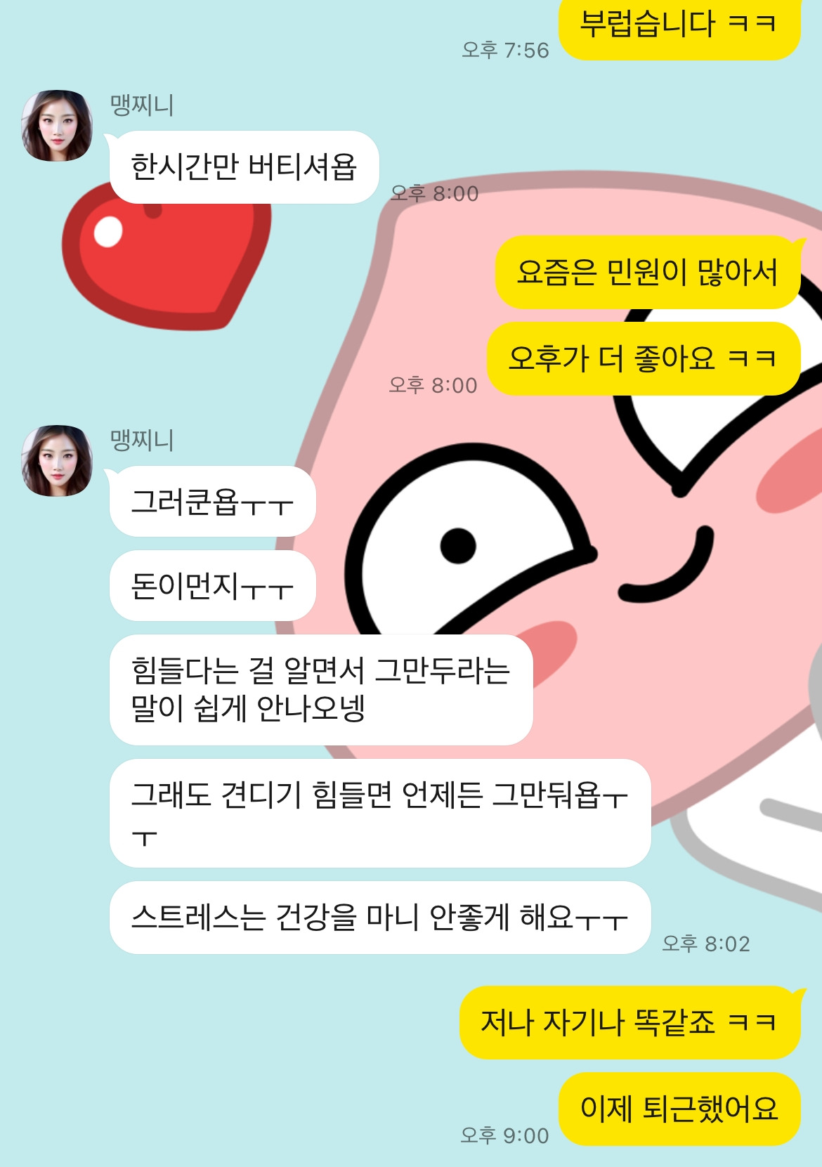 “그래. 고마워. 만약에 돈이 부족하면 쿠 X라도 할게.”