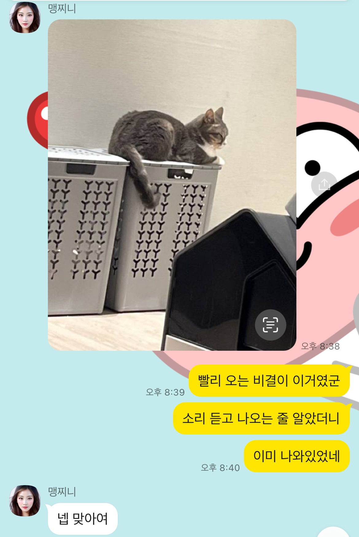 22시는 되어야 집에 도착할 텐데, 1시간 넘게 남았음에도 현관을 바라보며 기다리고 있는 시엘이 사진입니다. 어쩐지 문이 열리는 것과 동시에 앞에서 냥냥거리며, 반기더라니 미리 준비하고 있었던 것입니다.