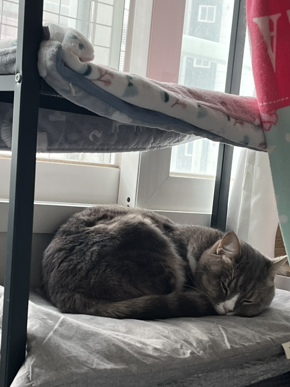 아내는 그 모습을 흐뭇하게 보았습니다. 그래서 캣타워에 온열기를 준비해 줍니다. 시엘이는 온열기 위에 자리를 잡았습니다. 온기에 노곤 노곤해져서 스르르 눈이 감깁니다. 사실 캣타워로 사용하고 있는 공간도 책꽂이입니다. 창가에 있다 보니, 창 밖을 보길 좋아하는 그녀가 터를 잡았습니다.