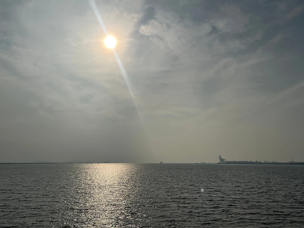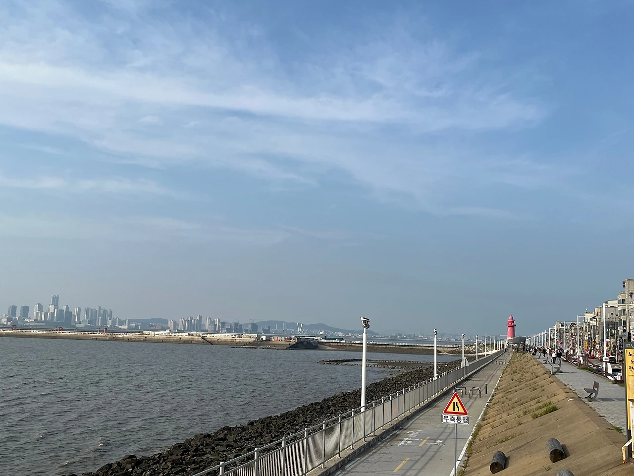 밝은 햇살이-파란 물감으로 칠해진 종이 위에 하얀 물감으로 그라데이션한 것 같은-하늘에 걸려있습니다. 하늘과 맞닿아있던 부끄럼쟁이 바다가 저 끝에서부터 검은 속살이 드러난 갯벌을 감추기 위해 물결치며 달려옵니다.