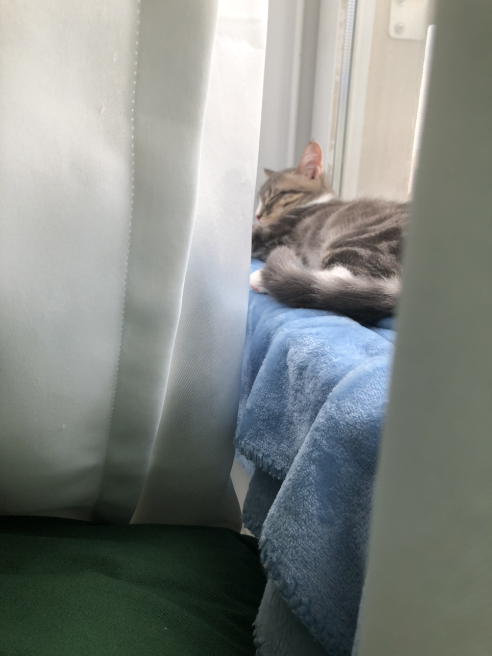 집에만 있을 순 없어 시엘이 잘 때 슬며시 공원에서 거닐다가 들어왔습니다. 퇴근하면서 시엘이를 부르면 “냥”하는 소리를 내며 반겨줍니다. 들어오며 동영상을 촬영할 준비를 하고 시엘이를 불렀습니다. 계속 잠만 자다가 일어났는지 거실에서 엎드린 채 저를 맞이했습니다. 멍석을 깔아주면 안 하는구나 하고 다소 실망한 채 침실로 향했습니다. 시엘이는 따라와서 잠이 들었고 저도 어느샌가 낮잠이 들었습니다.