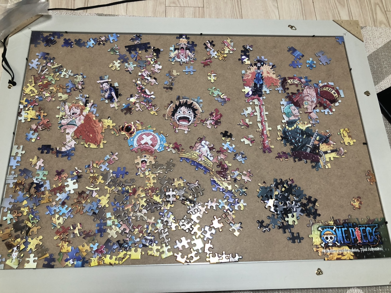 학창 시절부터 꾸준히 보고 있는 애니메이션이 있다. “원피스”라는 만화로 만화책도 모으고 피규어를 모을 정도로 좋아한다. 4년 전쯤 1000피스짜리 원피스 퍼즐을 구매해서 맞췄었다. 시간 날 때마다 조금씩 해서 한 달 정도 걸렸었다. 이사를 하면서 액자가 부서져서 퍼즐이 다 흩어졌었다. 잊고 지내다가 롯데마트에서 액자를 보고 문득 다시 맞춰야겠다는 생각이 들었다.