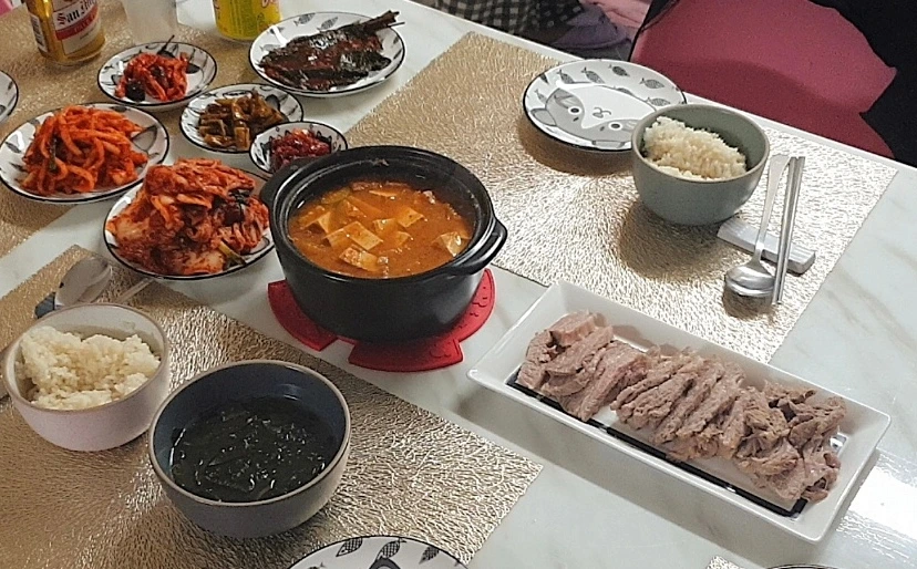아내가 차려준 밥상에 내가 삶은 수육을 올려서 함께 먹었다. 아내는 수육과 깻잎을 싸서 먹으며 연신 맛있다고 칭찬을 해주었다. 살짝 머쓱했던 나는 매일 삶아서 고객께 제공했었는데 맛있는 게 당연하지 하고 말했다. 아내의 맛있게 먹는 모습을 봐서 그런지 더 맛있었다.