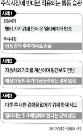 저자는 “인간사회와 주식시장은 반대로 움직인다”고 강조합니다. 인간사회에 적응하기 위해 터득한 법칙과 사고 체계가 주식시장에서는 오히려 성공을 방해하는 장애물이 된다는 것이죠. 사회에서 시간을 절약하기 위해 학습된 효율적이고 합리적이라 생각되는 행동들도, 주식시장에서는 오판으로 귀결되는 경우가 많습니다. 예를 들어 차가 막힐 때 제자리에서 기다리지 않고 차선을 바꾸는 행동은 사회에서는 효율적인 행동이지만, 주식시장에서는 이러한 소위 ‘효율적인’ 행동은 급등주 추격을 부추긴다는 것이죠. 많은 사람들은 자신이 투자한 종목이 상승하지 않으면 더 빨리 수익을 내기 위해 다른 종목으로 갈아타곤 하지만, 옮겨 간 종목에서 오히려 손실을 더 많이 경험하게 되는 것처럼요. 즉 실제의 세계와 주식세계를 보는 눈은 달라야 한다는 것입니다.