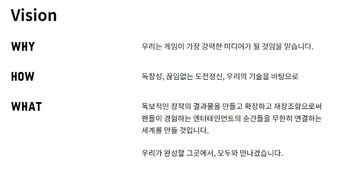 현재 크래프톤의 비전 _ (출처 : 크래프톤 홈페이지)