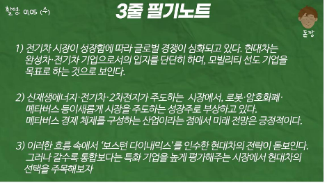 영상별 말미 요약정리 예시 (출처 : <돈깡의 알고하는 투자> 유튜브 채널)