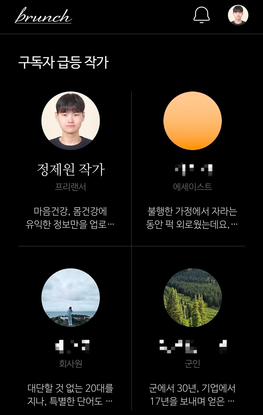 어젯밤 10시에 자서 새벽 4시에 깼어요. 브런치 어플을 무심결에 들어가 보니 제가 구독자 급등 작가 명단에 딱 있더라고요.