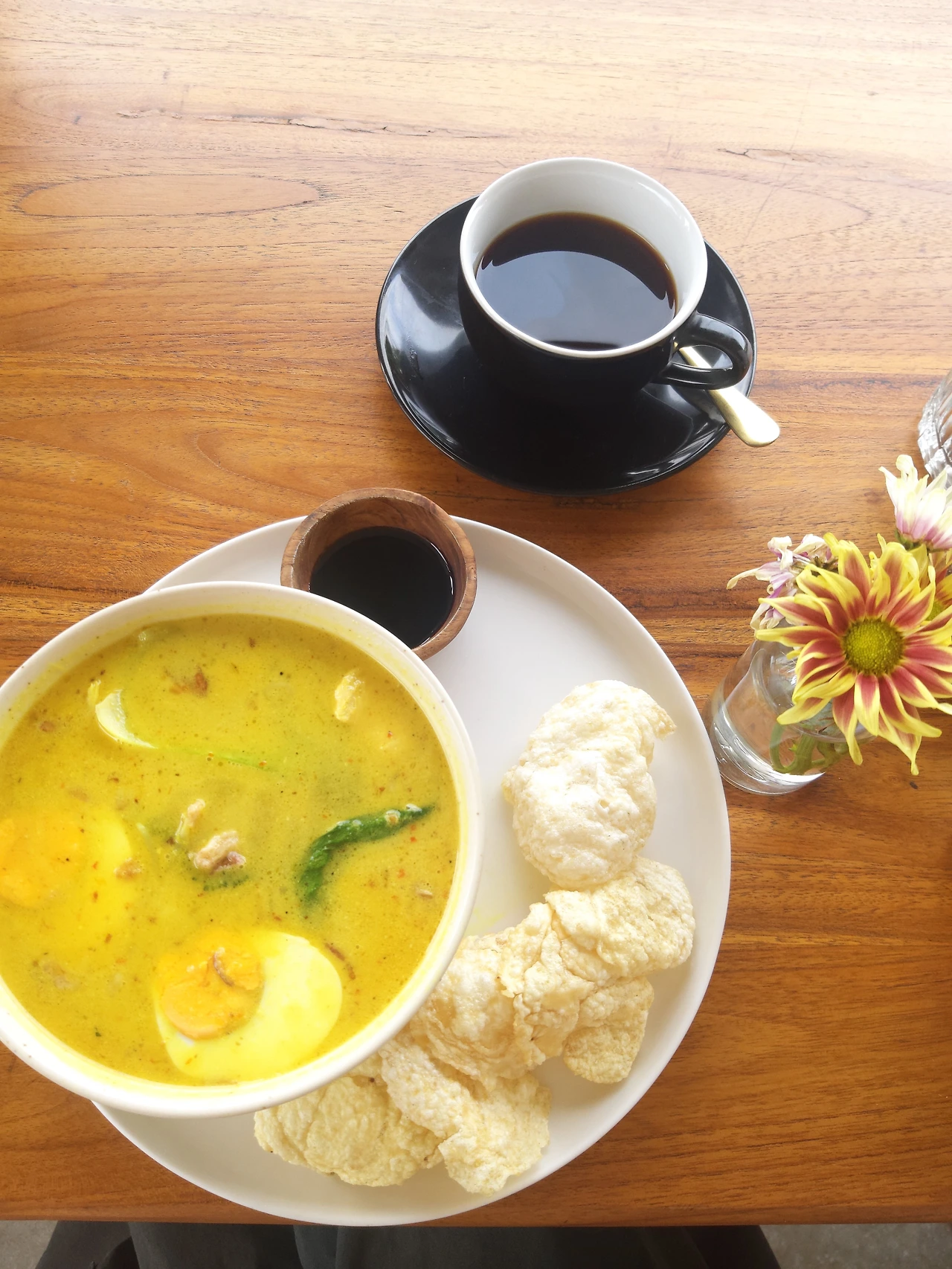 골목을 돌아 찾아낸 카페에서 커피와 아침으로 락사를 주문했다. 모든 것이 천천히 돌아간다. 시간도 바람도 그리고 나도. 무위도식을 실천해 보기로 한다.