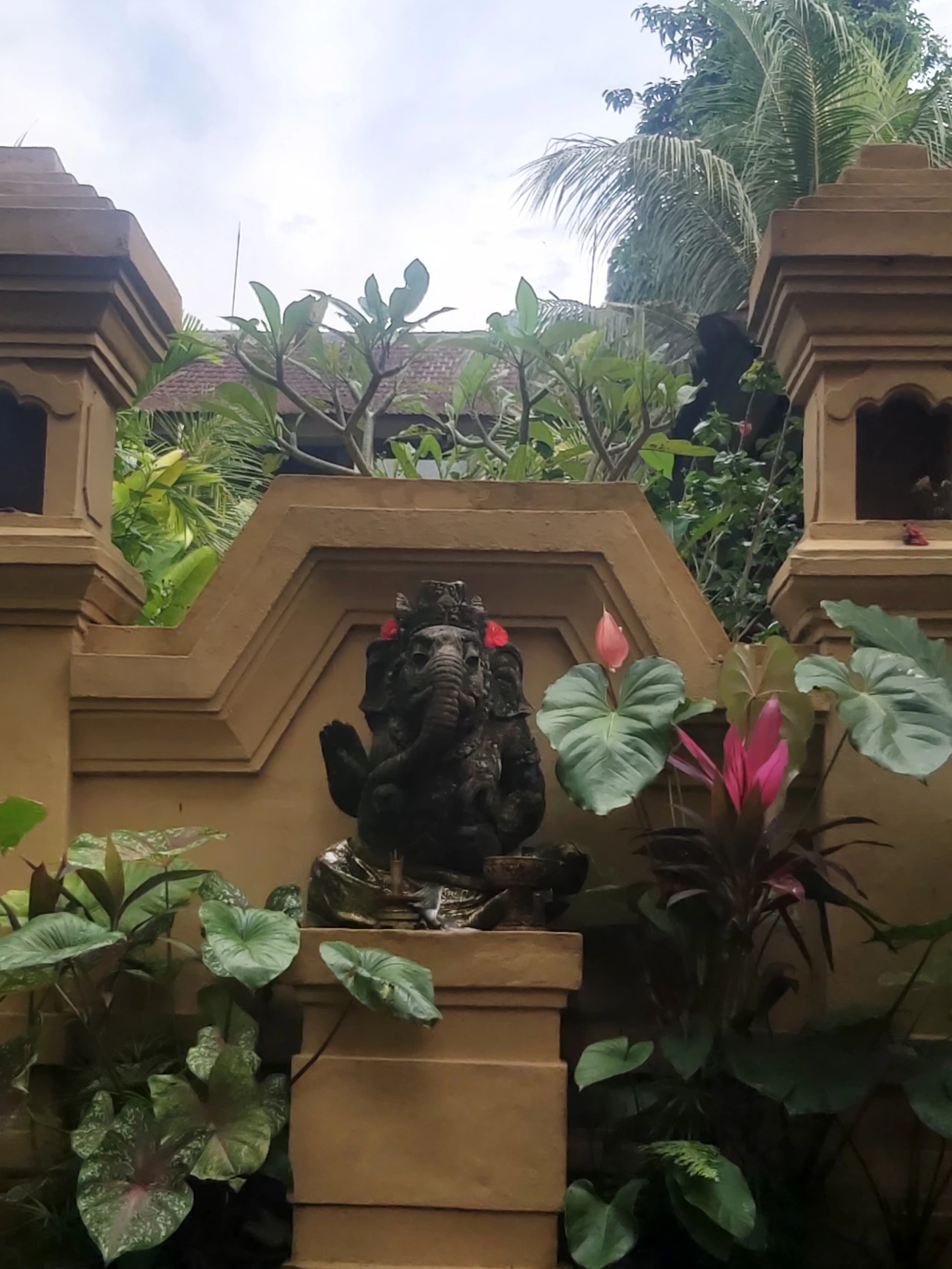 꽃을 단 발리의 코끼리 신마저도 귀여운 아침이다.