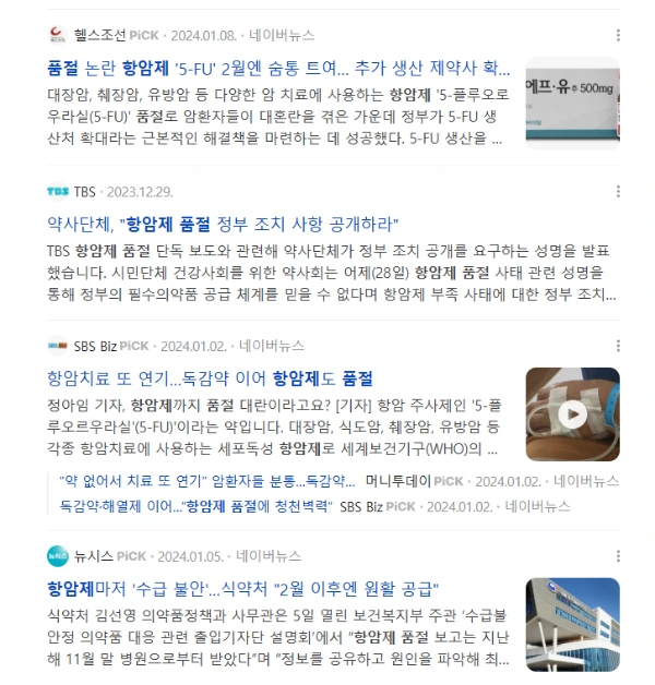 작년 말부터였나, 내가 투여받는 항암제는 아니지만 일부 항암제가 품절이 되면서 암환자들의 치료가 지연되고 있었다.