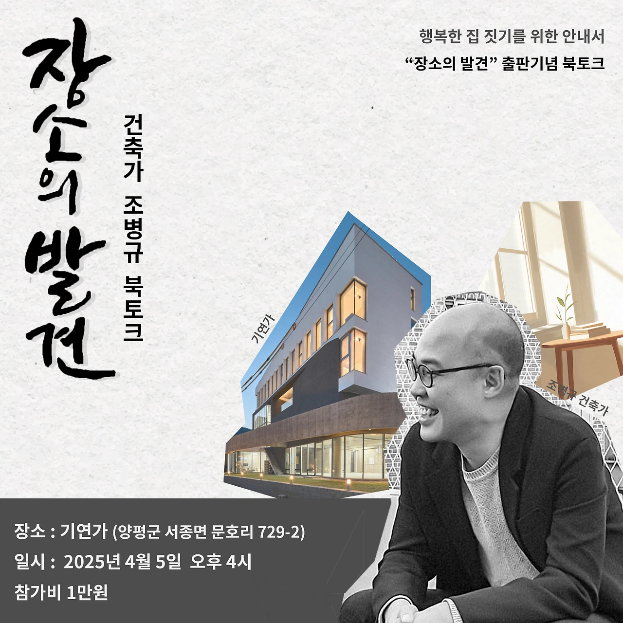 책의 얘기도 하겠지만 아마도 집과 관련된 여러 얘기가 오갈 듯합니다. 유명하신 건축가 분들이 꽤 많이 오신다고 하니 나름 유익한 시간이 되지 않을까 싶습니다.