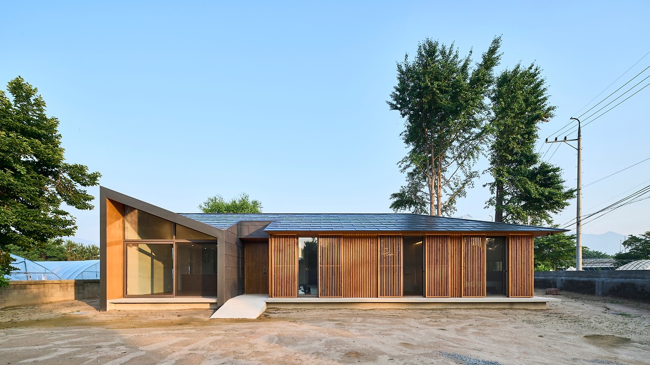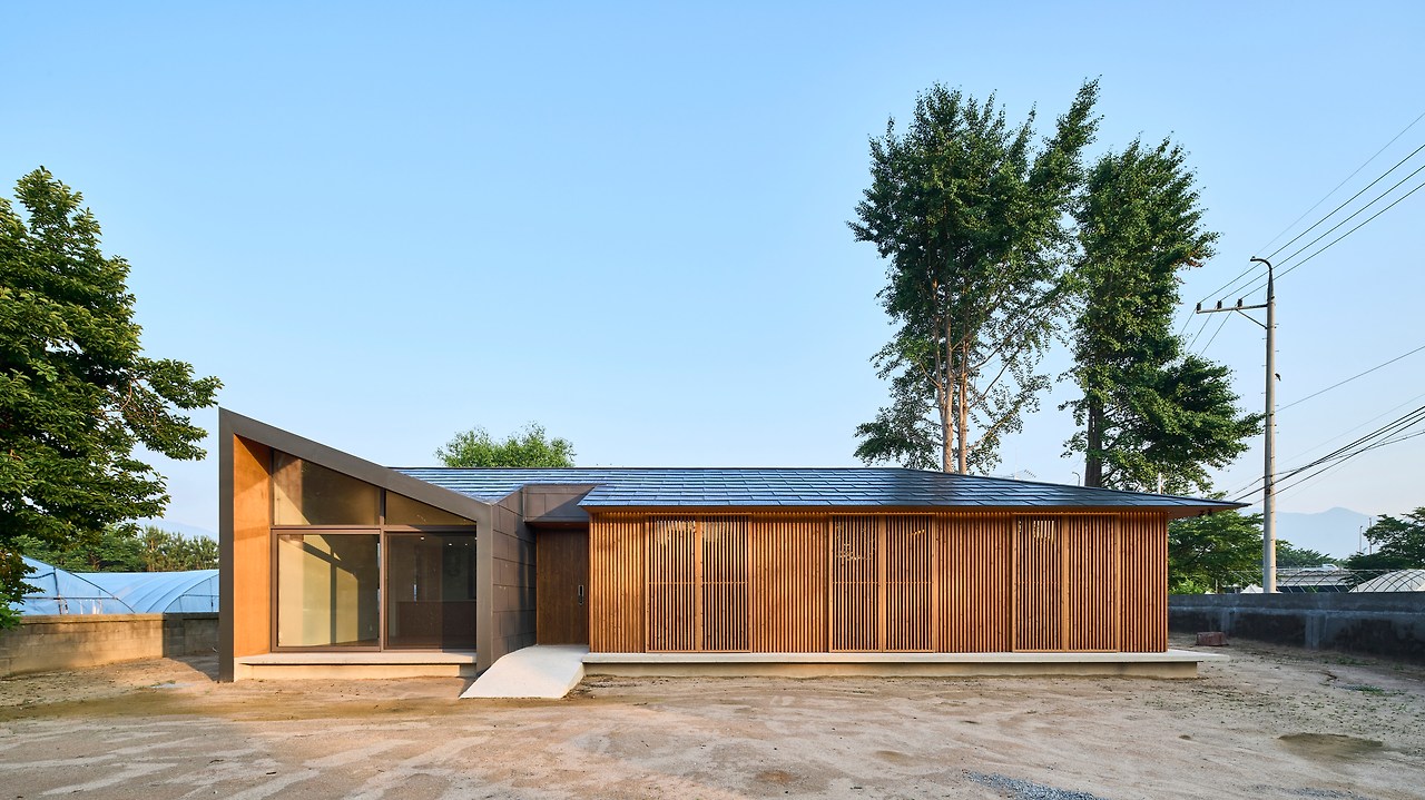 지붕은 기존의 모임지붕 형태를 유지하며, 수평으로 증축되는 부분만 형태를 변형시켰다. 스무 가구가 채 되지 않는 마을에서 옛 집의 모습이 현격히 달라짐은 잔잔한 물 위에 던진 하나의 돌멩이처럼 파장을 가져올 것이기에, 익숙한 마을의 풍경을 이어가기로 한 것이다.