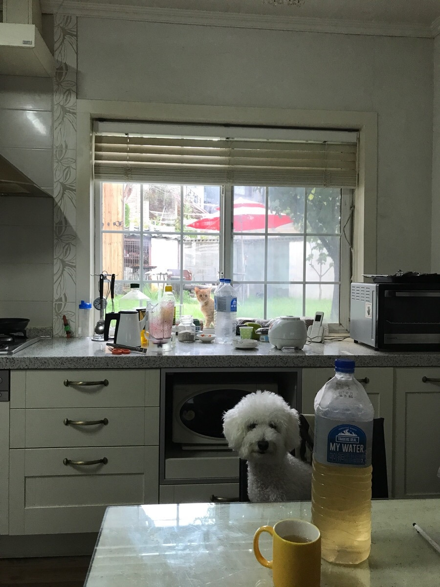 얼마 전부터 부엌 창가에서 이놈이 뒷마당을 어슬렁거리고 툇마루에서 자고 하는 장면을 목격했더라고.