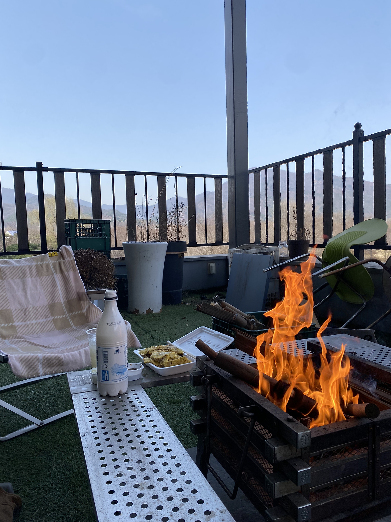 투닷 테라스에서 장작을 지피고